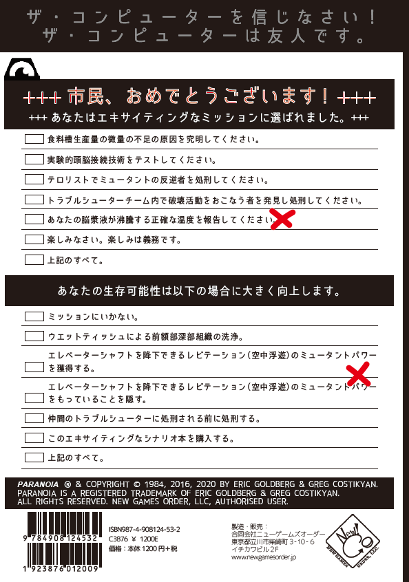 パラノイア【リブーテッド】ミッションブック『信じがたい指令』